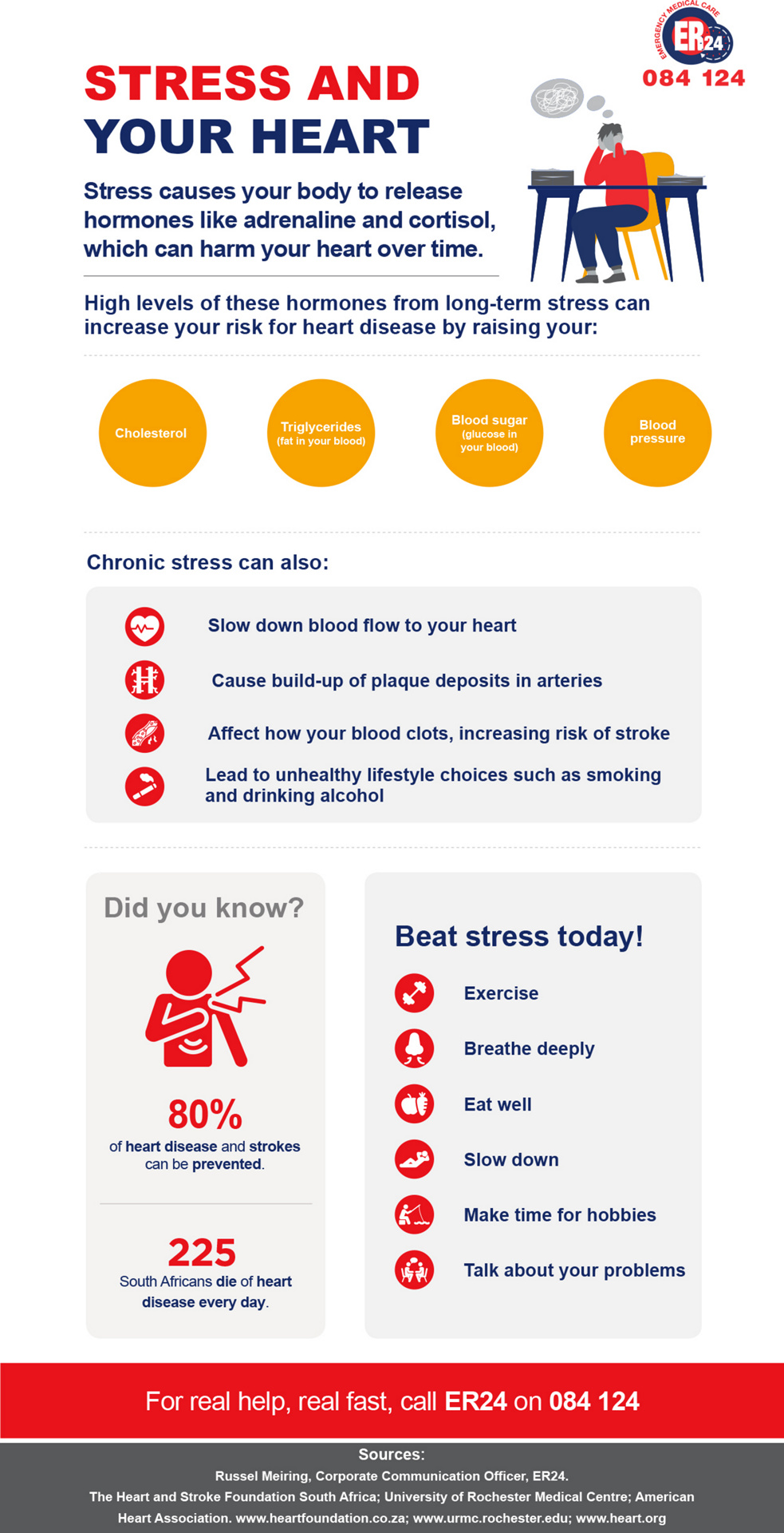 Stress causes your body to release hormones like adrenaline and cortisol, which can harm your heart over time.